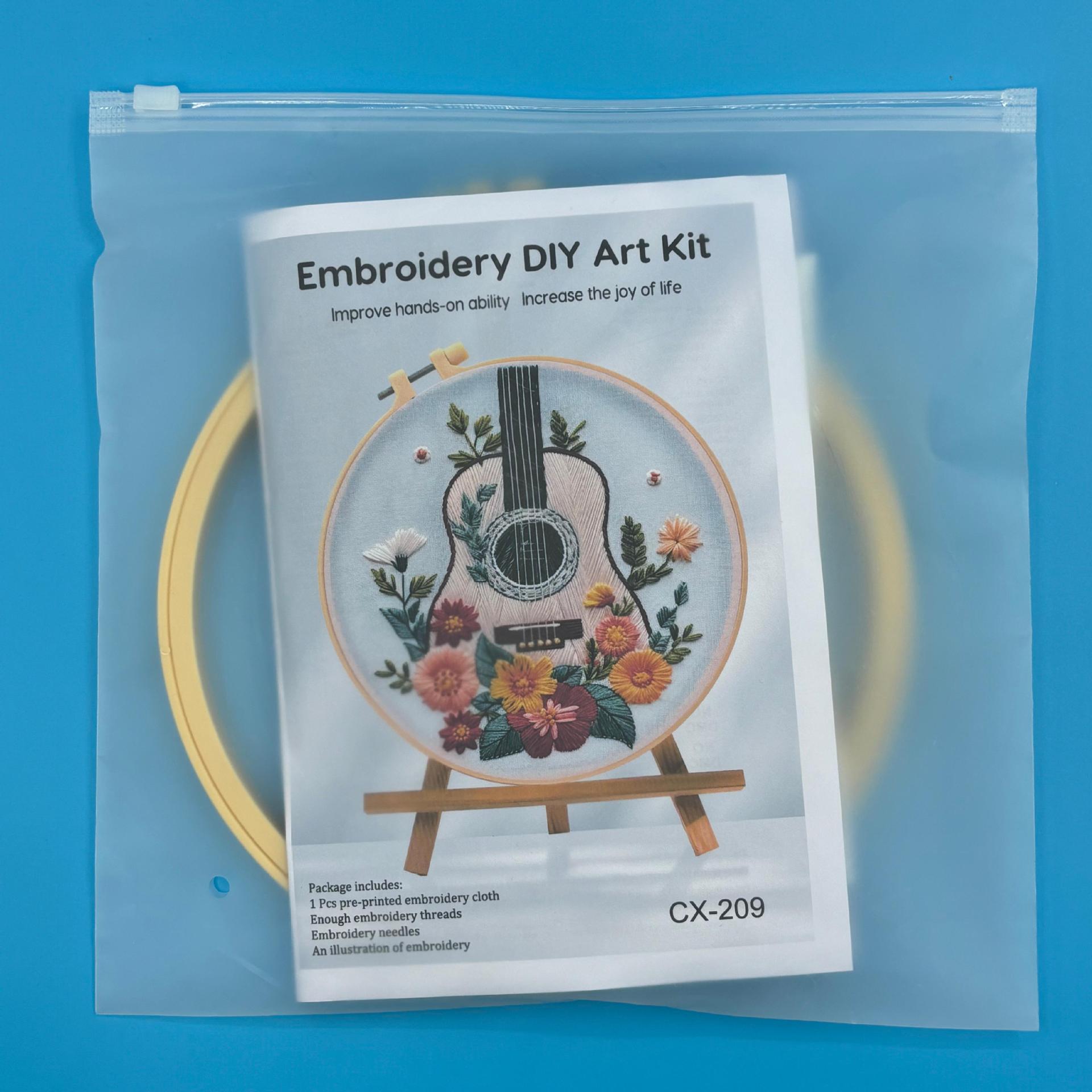 DIY Guitar & Floral Embroidery Kit: Beginner-Friendly Cotton Linen Art Package with 8-Inch Hoop & Tools